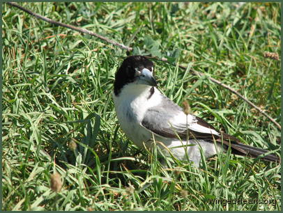 Grey butcherbirds are much smaller in size than their cousins the Pied-butcherbirds.  The two species do not share the same territory.